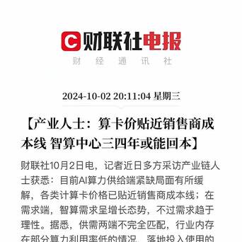 【算力过剩,比我们想象中来得要快】看到财联社的消息,算卡的价格已经贴近销售成本,两个月前我就说过,算力是会过剩的。现在看起来网络股票线上配资开户,这一天很快就要到来了。